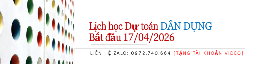 - Khóa dự toán và Đo bóc khối lượng: 12 buổi – Học trực tuyến qua Zoom